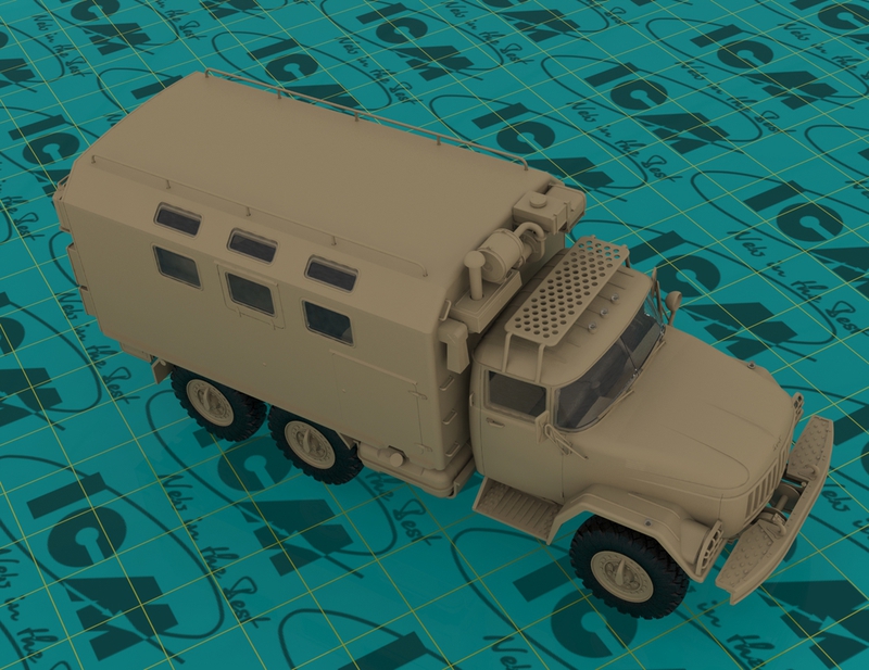 Детализированная подвеска, сборная несущая рама, детально проработанная ходовая часть, раздаточная коробка, карданные валы, мосты, рессоры, выхлопная система выполнена отдельными деталями.